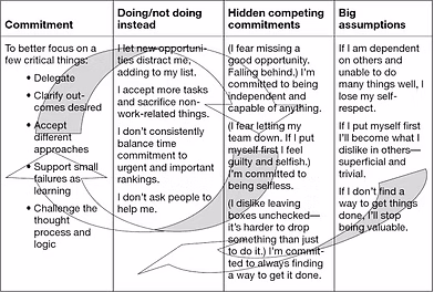 This tool is limited by how honest we are welling to be with ourselves about our hidden commitment and our assumptions and by how much we dig deeper to reveal these commitment and assumptions. This tool will not be helpful if we do not have a specific goal or change we want to achieve.